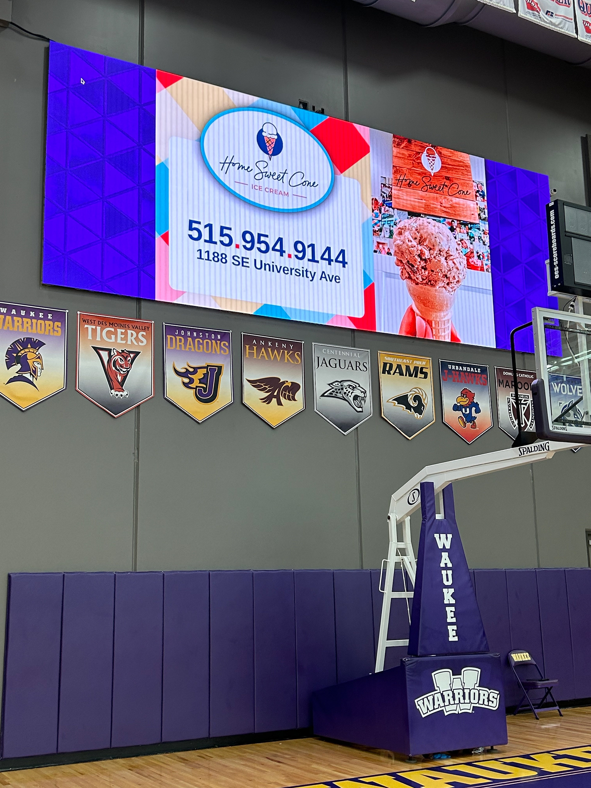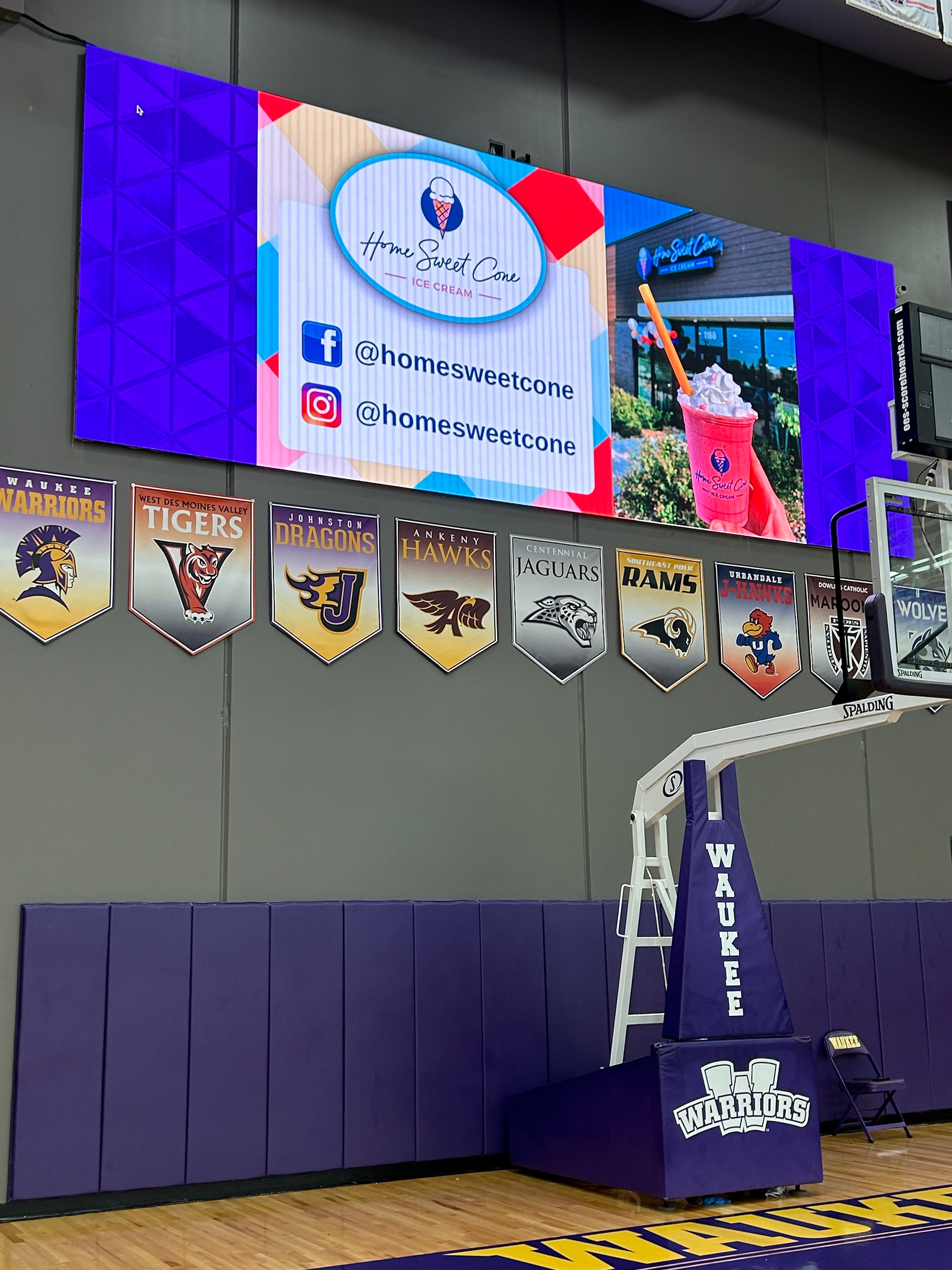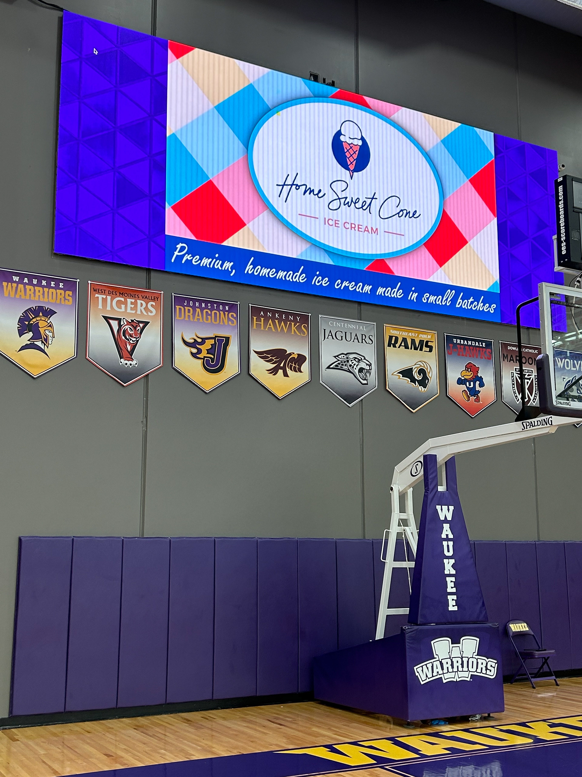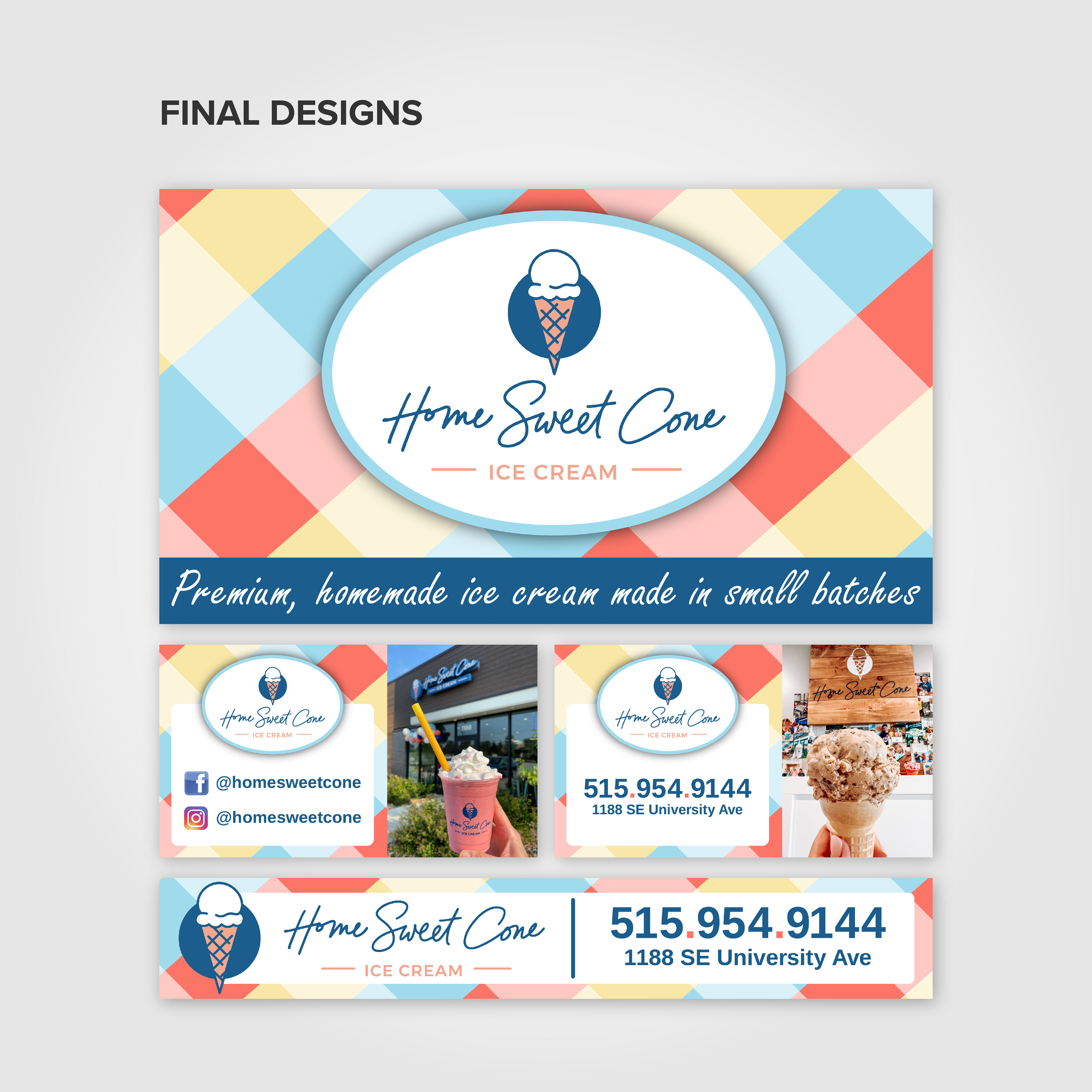 Home Sweet Cone is an ice cream shop based in Waukee, Iowa. They advertise at Waukee high school gyms. They provided their logo, branding colors, and images of their sweet treats. I chose fonts that complemented their logo. Their main location features a wall with a diagonal plaid design, and I incorporated a similar theme into the design of these advertisements. The advertisements featured three full-screen ads and a banner ad.