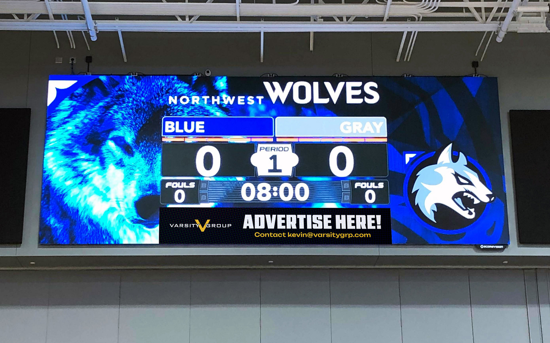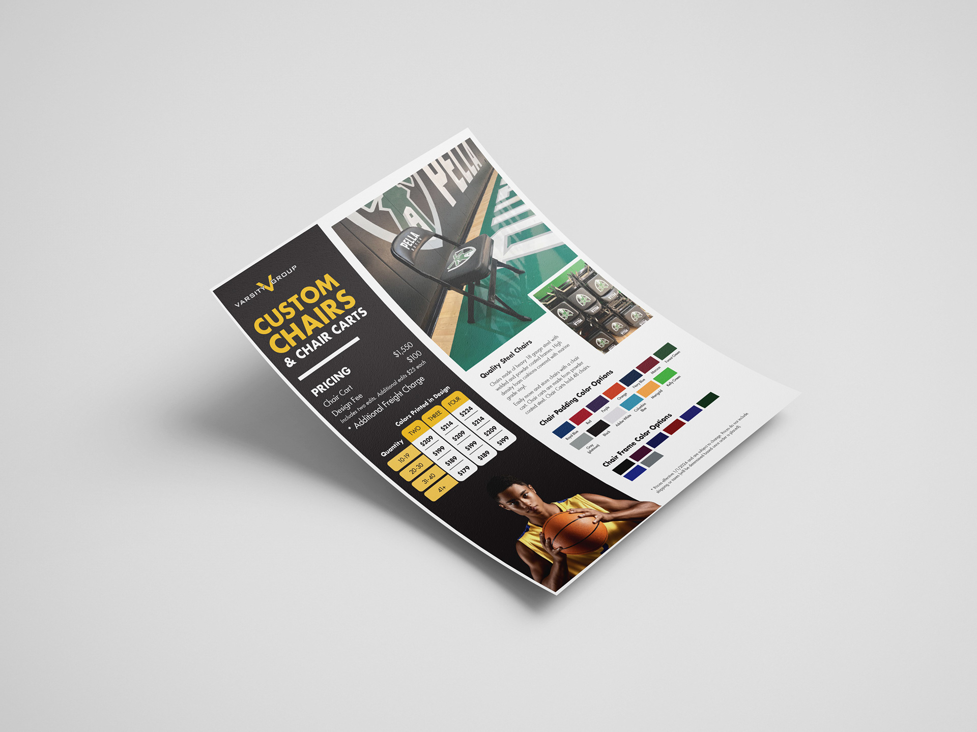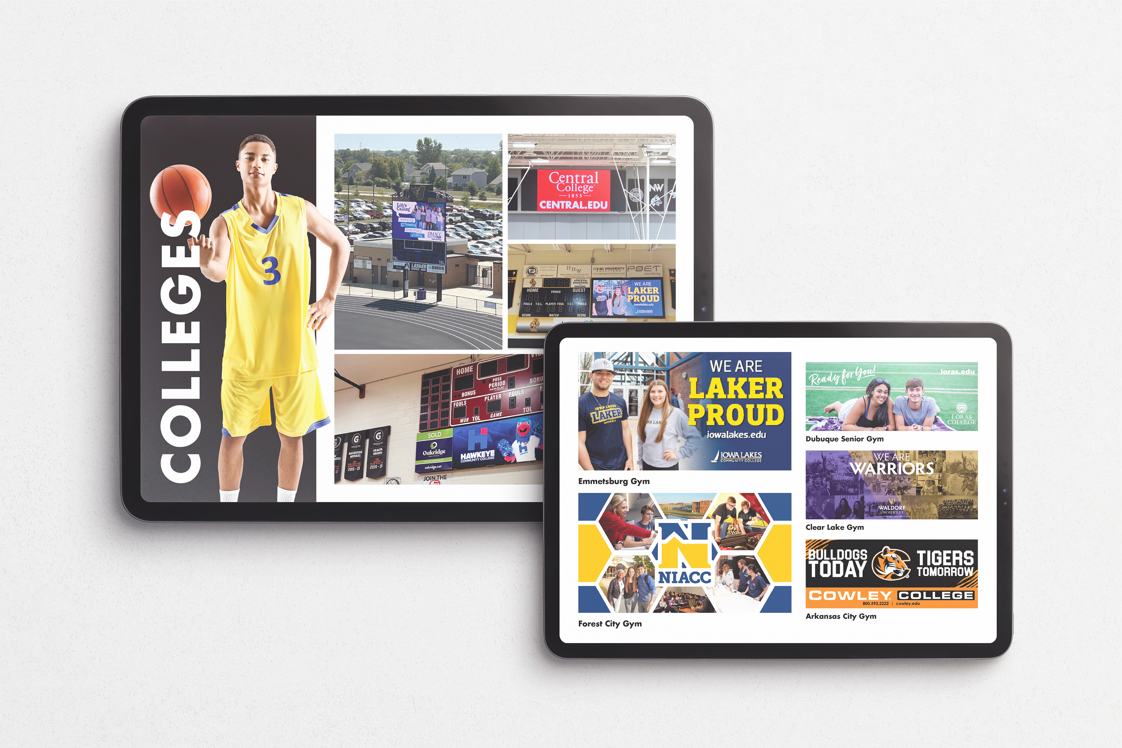 Varsity Group is an advertising and marketing company based in Des Moines, Iowa. They sell advertising space at high school gyms and stadiums across the Midwest. Varsity also offers many different products that can be customized for schools’ athletic departments. During my time as the sole graphic designer for Varsity Group, I created a variety of promotional materials. These included flyers, brochures, business cards, digital presentations, and LED advertising slides. Using the existing logo and branding colors, I kept a consistent sporty yet clean feel across all the designs. Using bold serif fonts paired with dark backgrounds and eye-catching images of adolescent athletes, the designs produced a modern look while connecting viewers with their local high school athletics teams.
